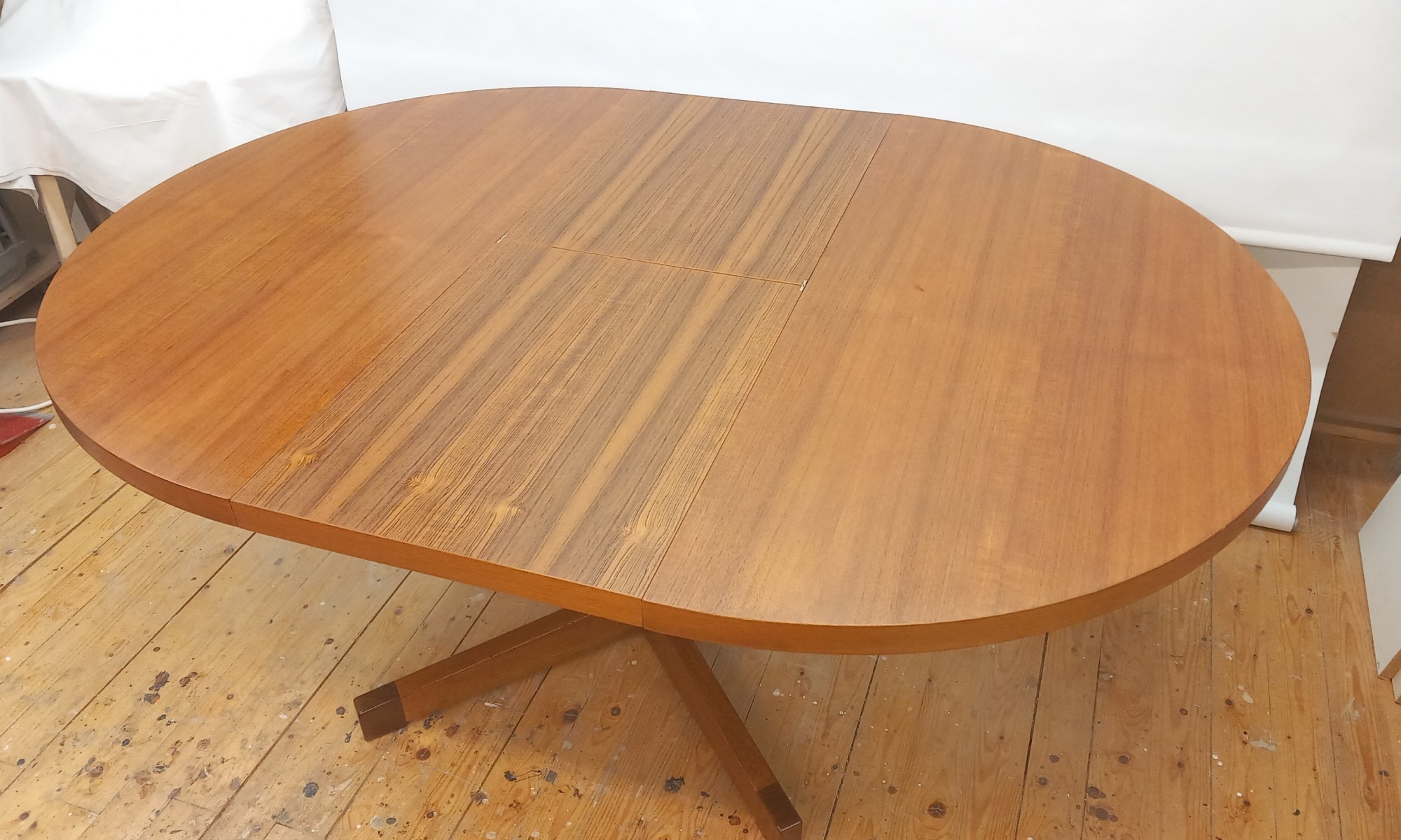 Haimi Oy:n jatkettava tiikkipöytä 1960-luvun alkupuolelta. Kunnostettu pöytä on erinomaisessa kunnossa. Pöydässä ei ole patinaa, naarmuja, kulumia tai kolhuja (yksi pieni tummentuma). Pöytä on liitoksiltaan ehjä ja tukeva.