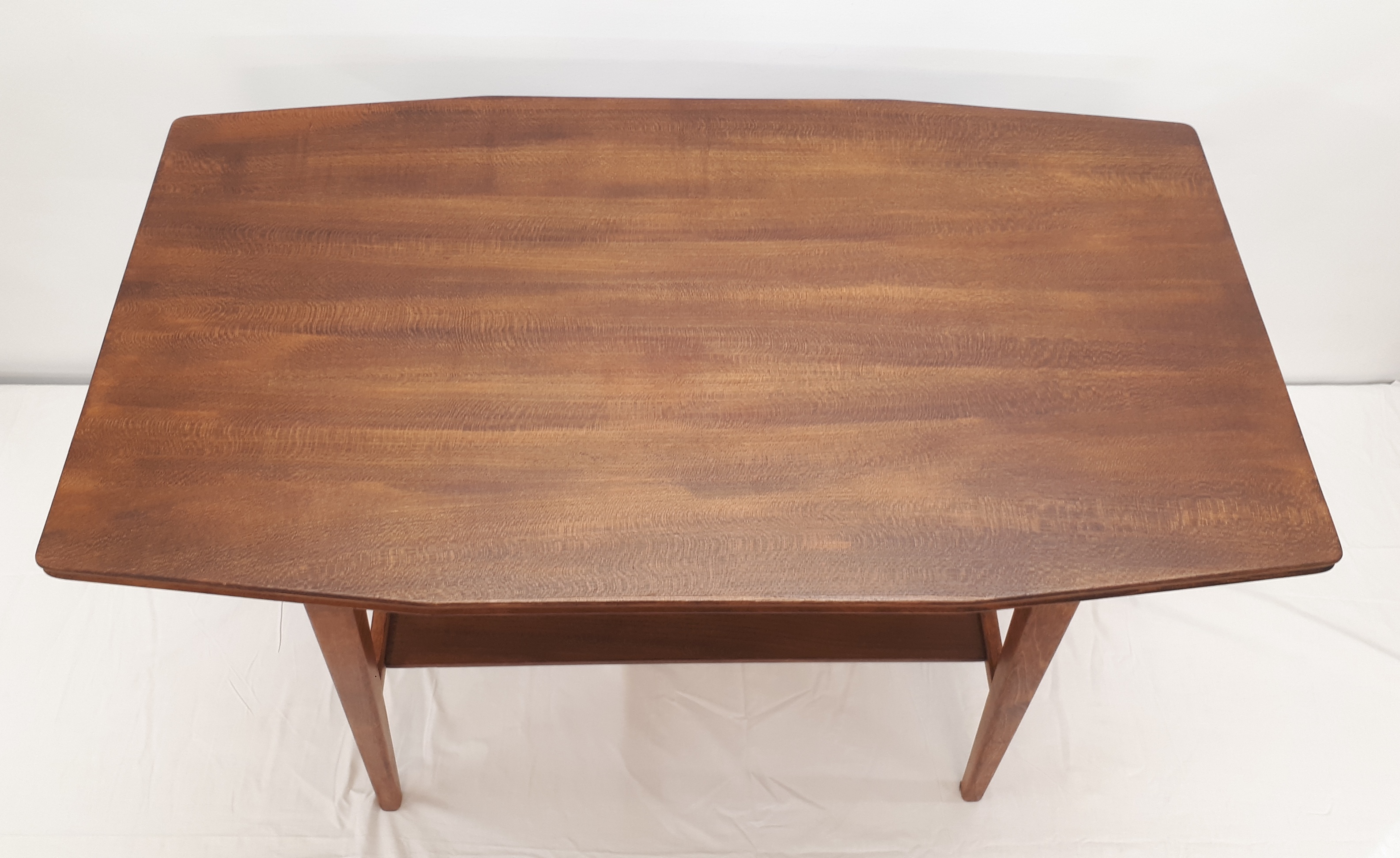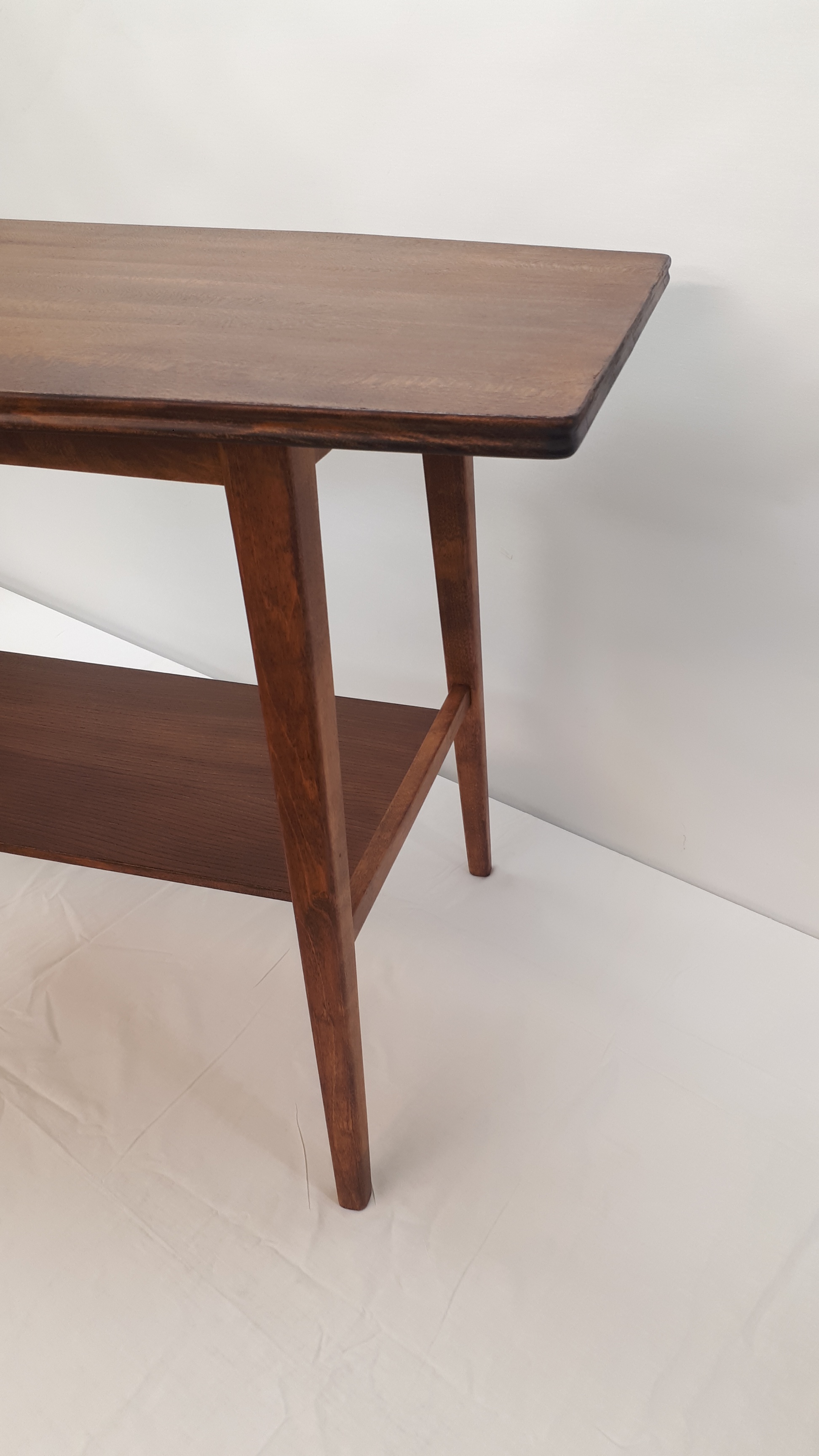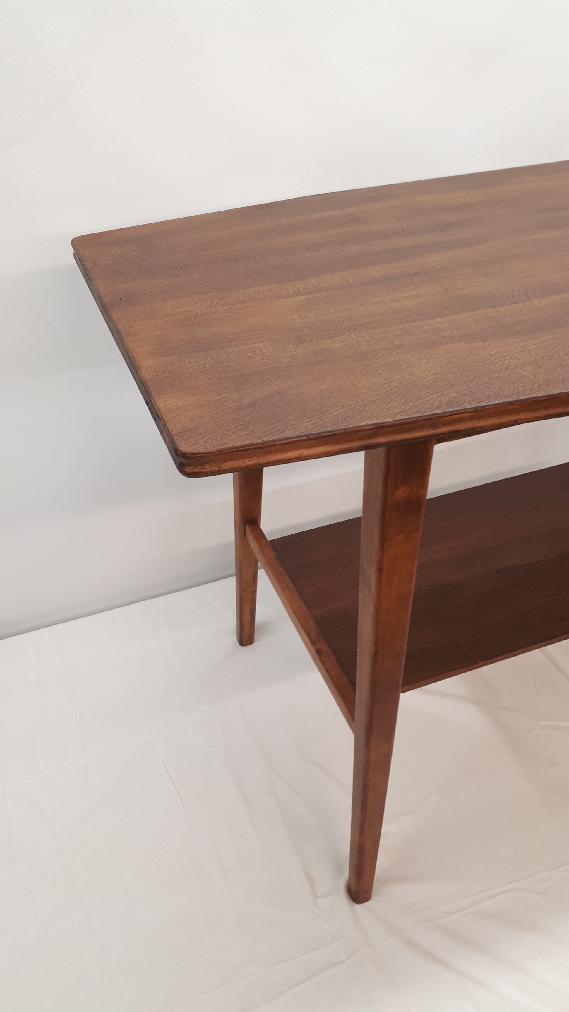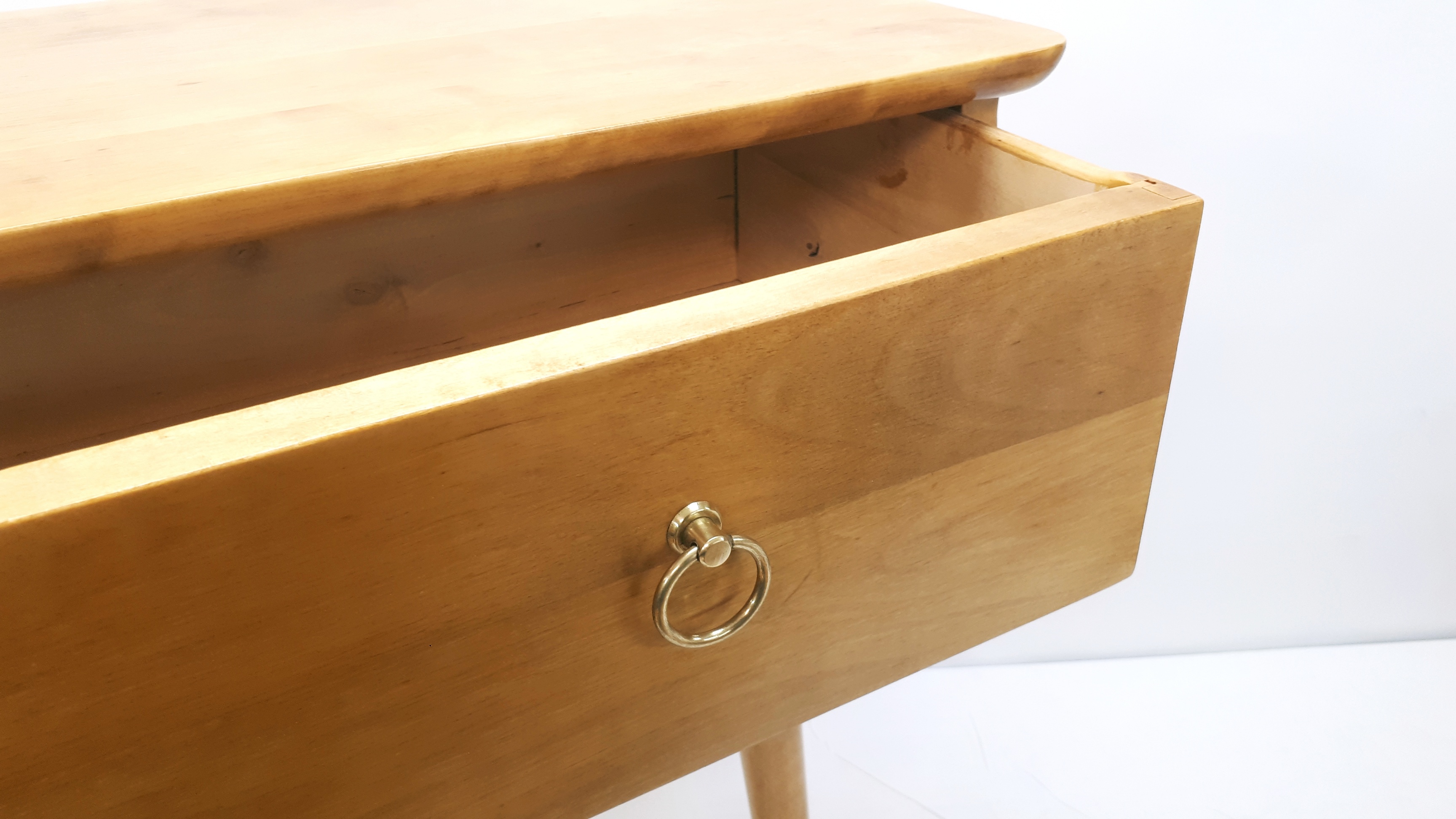 Takaosan irtohylly ja puupyörät eivät ole alkuperäiset. Hylly ja moitteetta toimivan pyörät on valmistettu alkuperäisen mallin mukaan 1950-luvun koivusta.