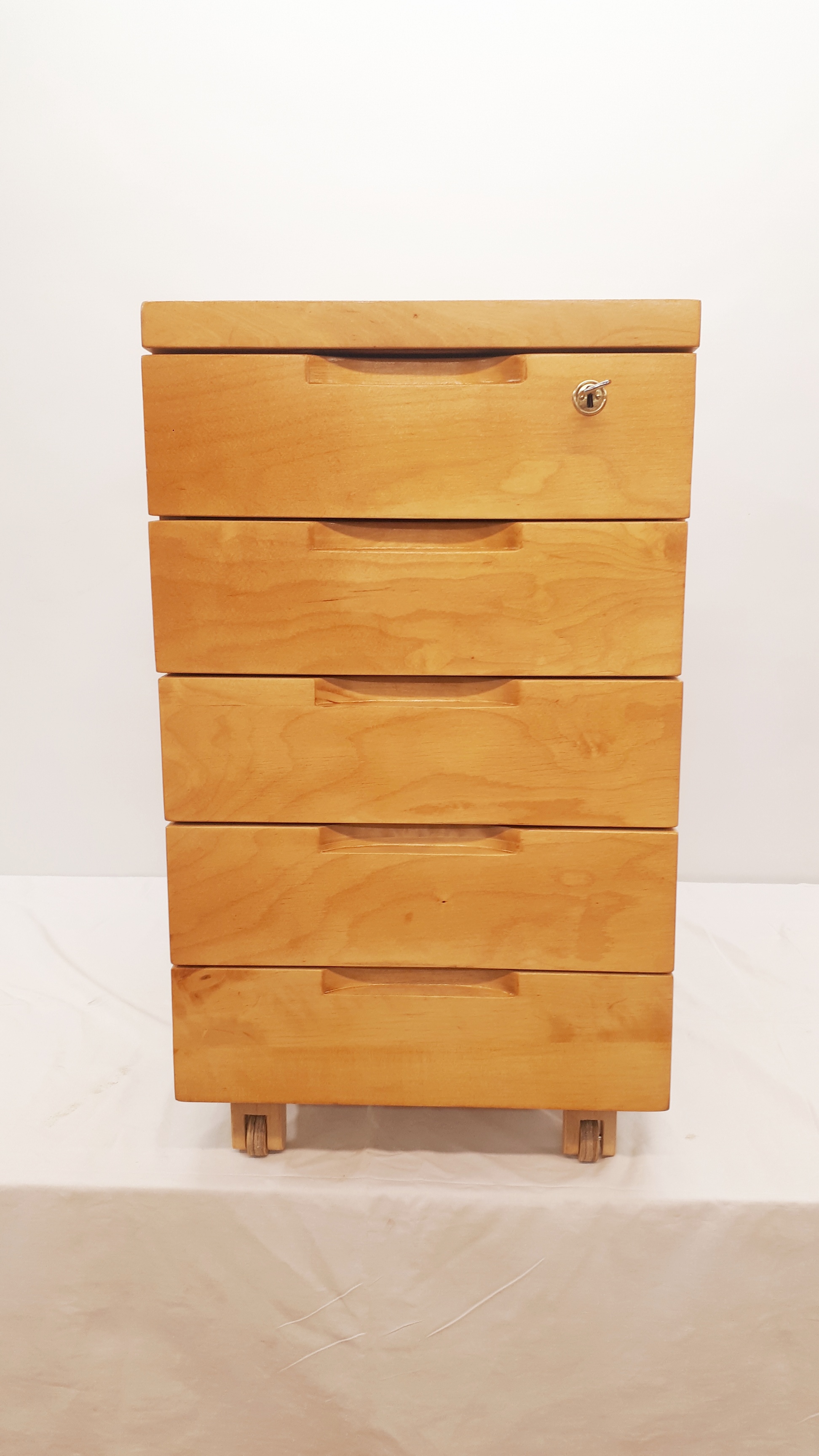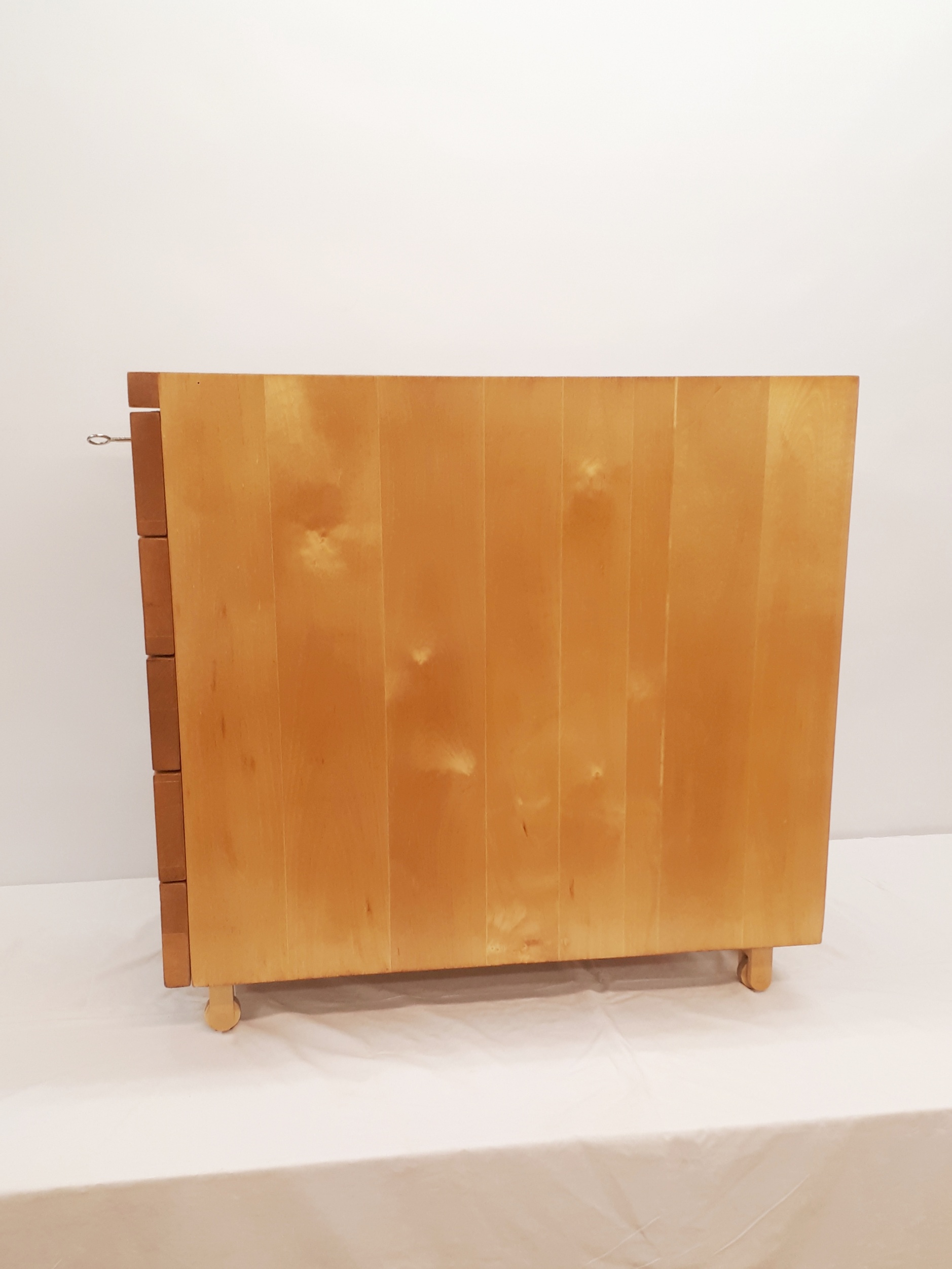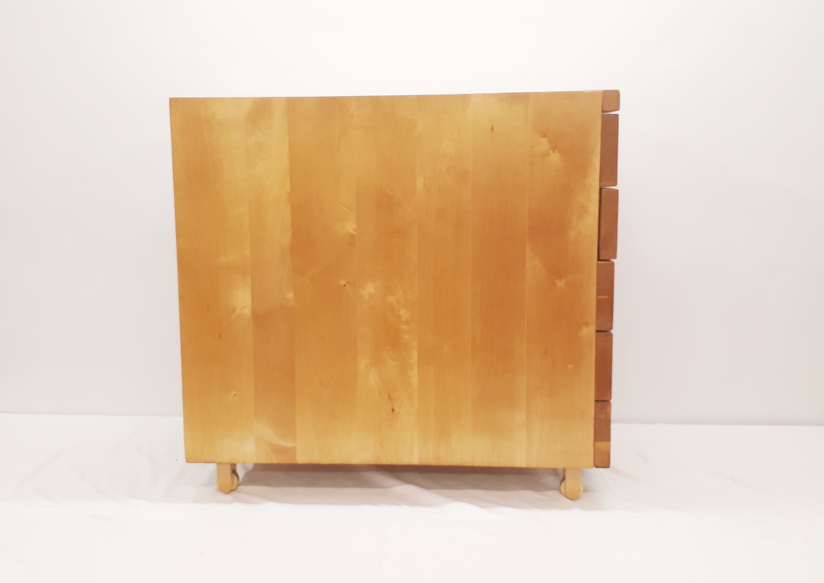 Erinomaisessa kunnossa oleva, entisöity Aino Aallon (1894-1949) suunnittelema Artekin laatikosto (malli B96) 1900-luvun puolivälistä. Valmistaja: O.Y. Huonekalu- ja Rakennustyötehdas A.B.