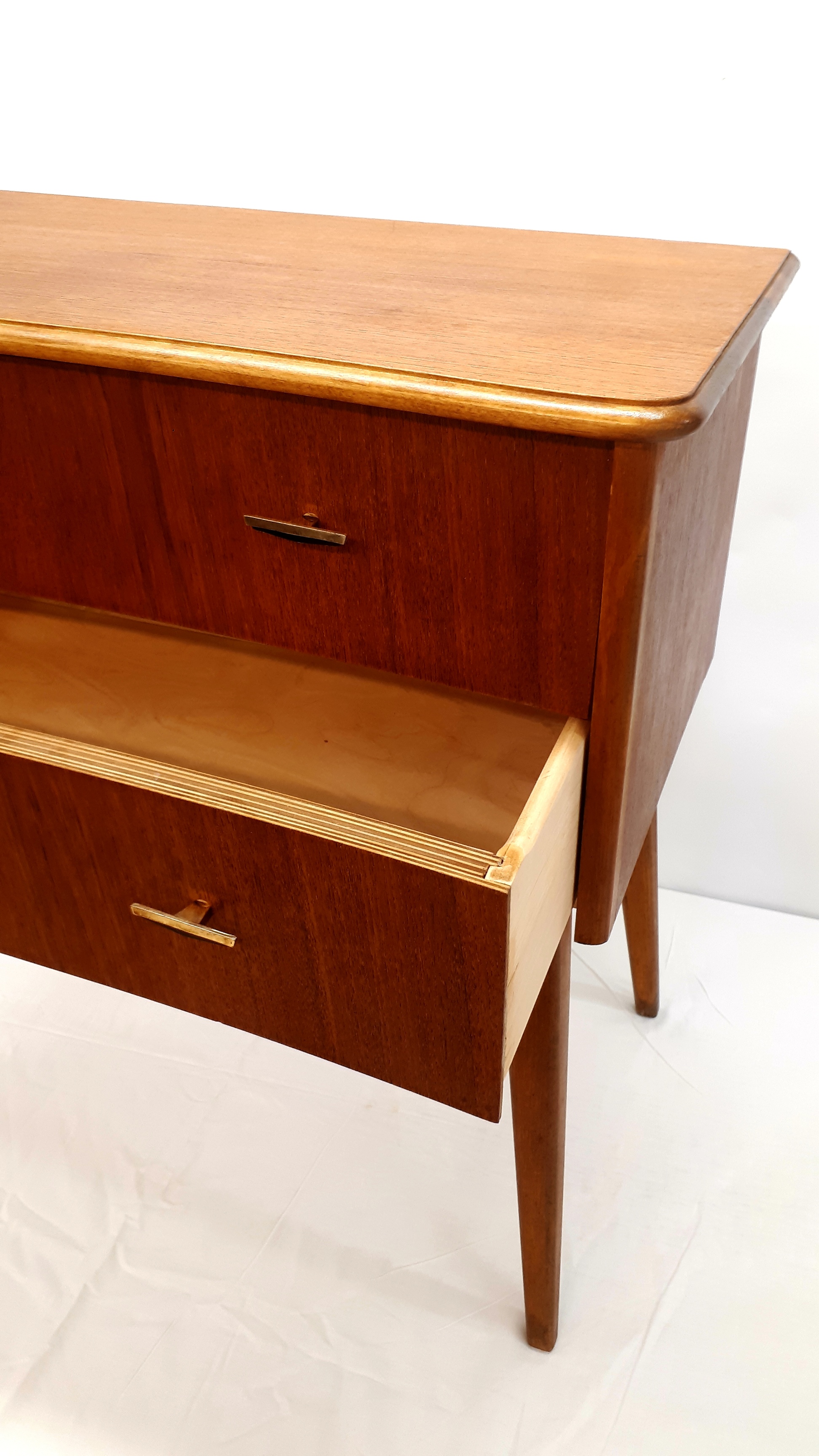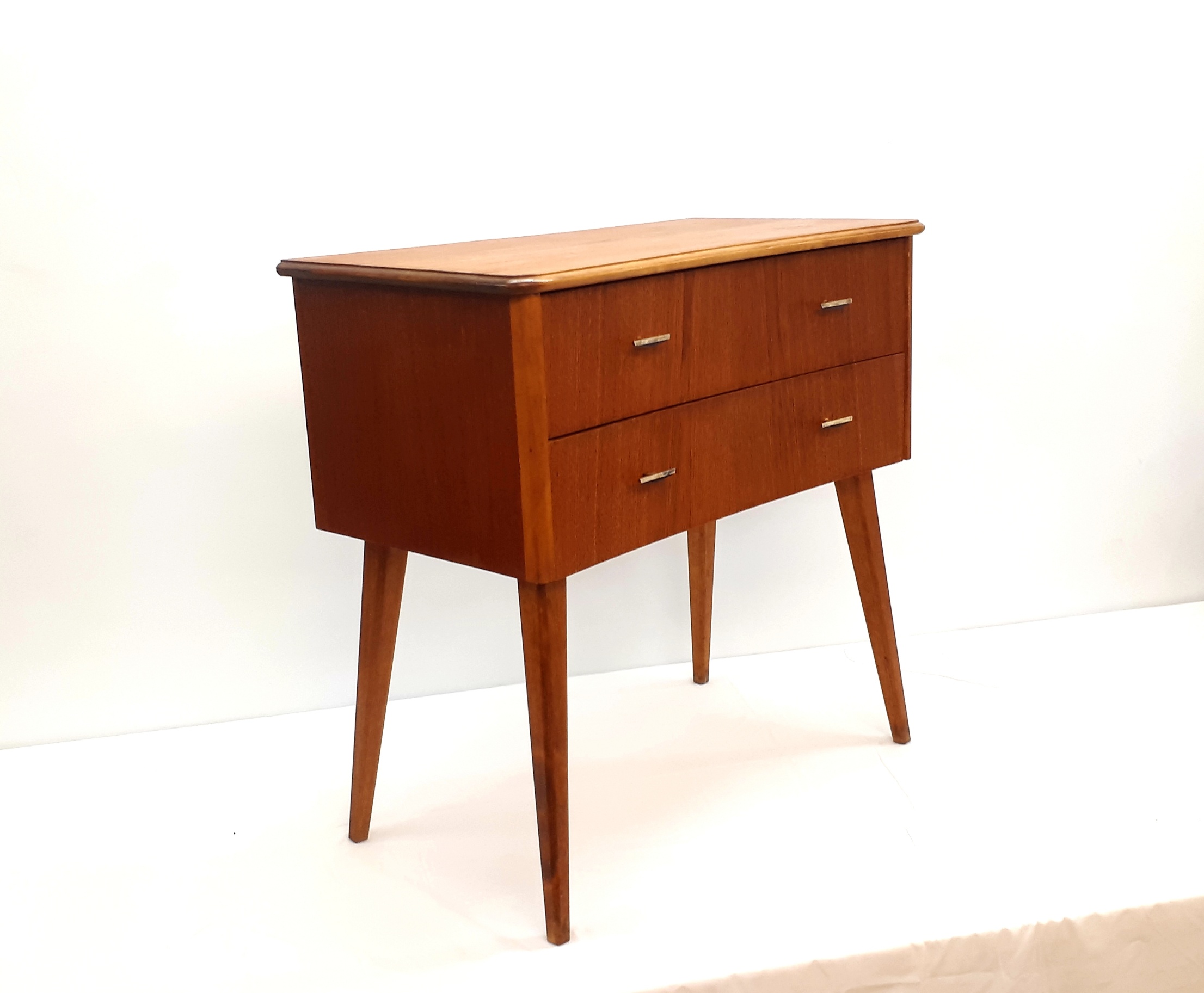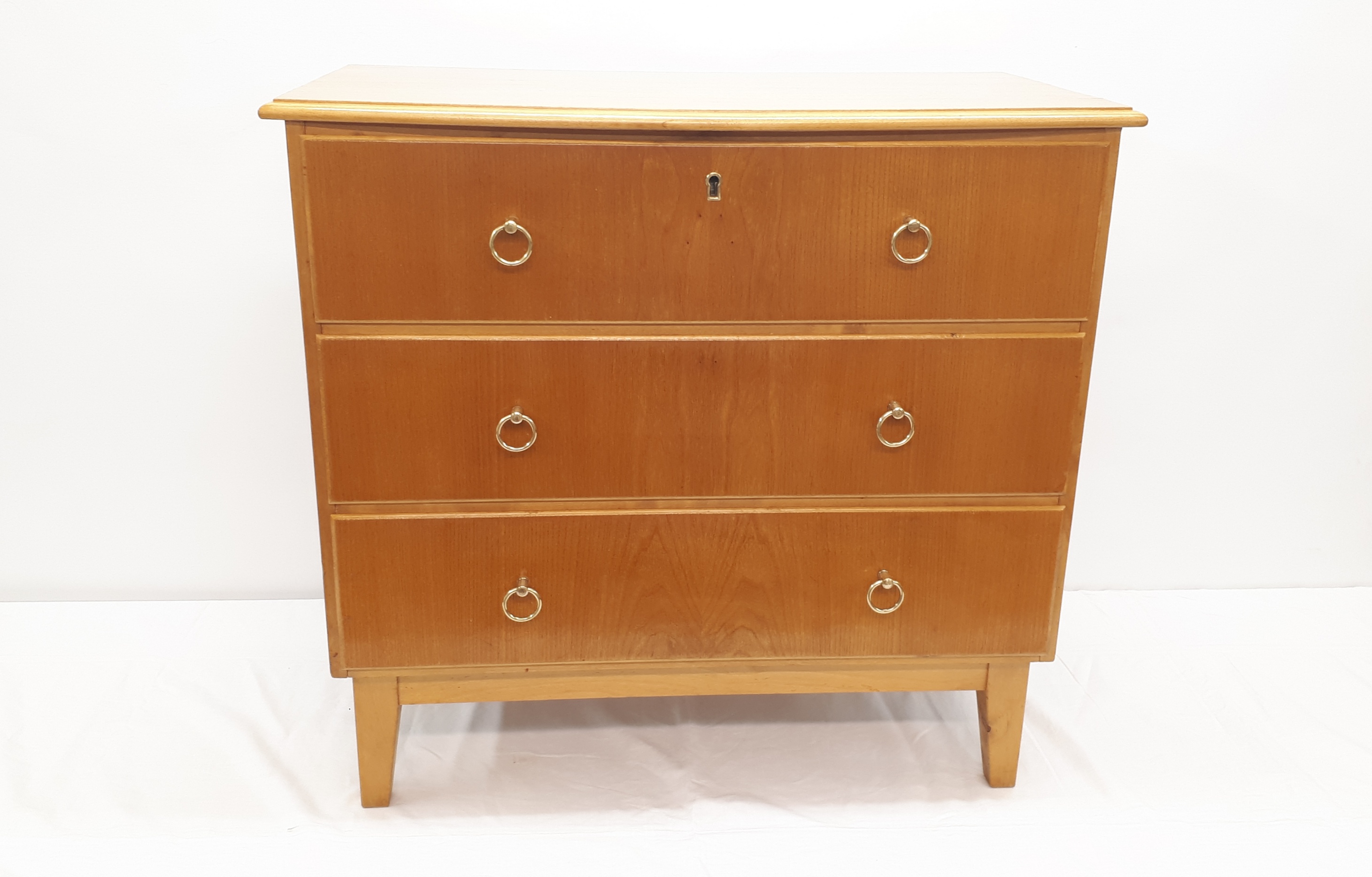 Erinomaisessa kunnossa oleva, entisöity Aino Aallon (1894-1949) suunnittelema Artekin laatikosto (malli B96) 1900-luvun puolivälistä. Valmistaja: O.Y. Huonekalu- ja Rakennustyötehdas A.B.