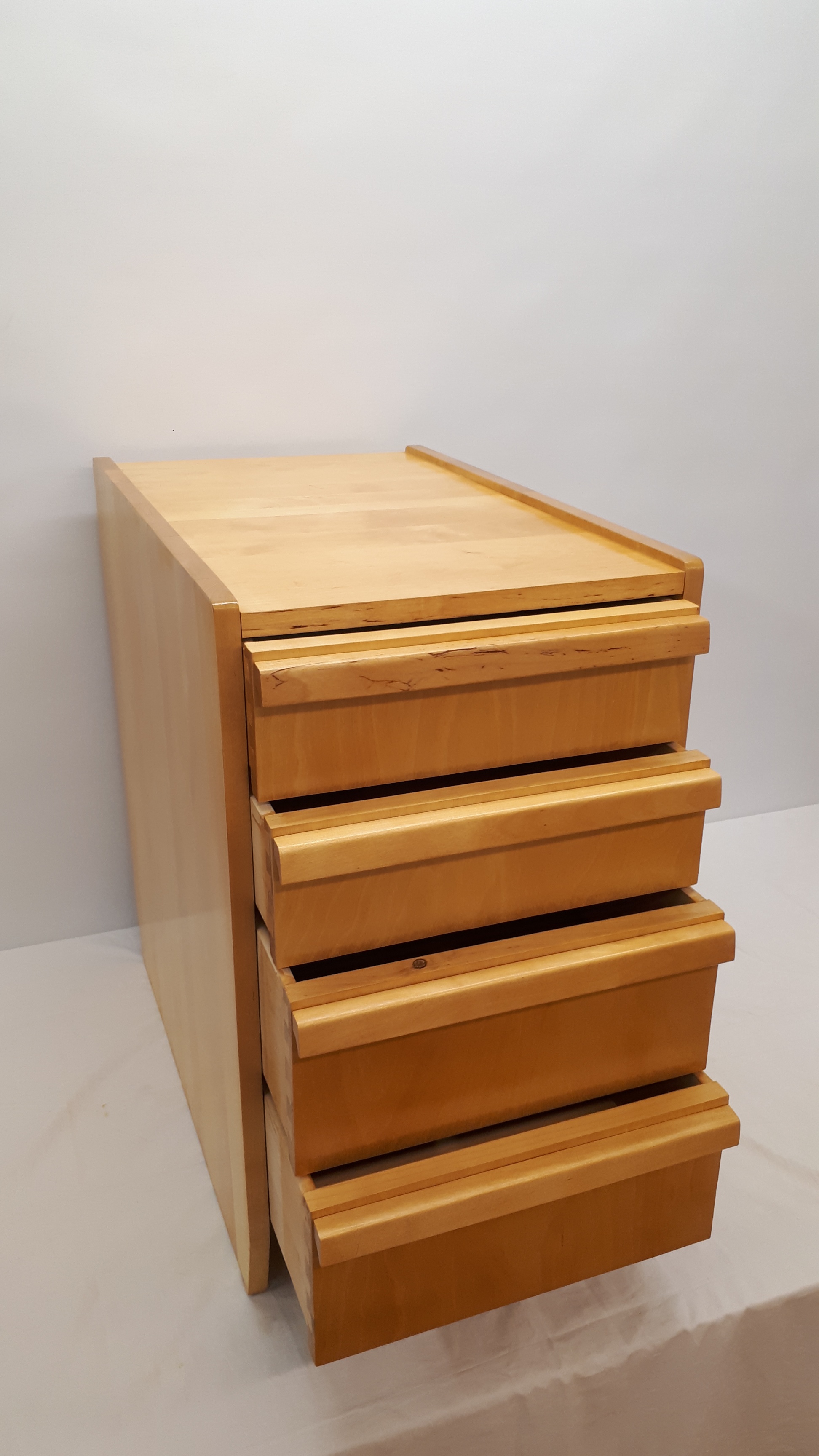 Kunnostettu Ilmari Tapiovaaran 1950-luvulla suunnittelema koivupuinen laatikosto (Valmistaja: Vakiopuu Oy). Laatikoston kaikki pinnat on uusittu vanhaa kunnioittaen. Laatikoiden sisäosat on purettu, kunnostettu ja ne ovat puhtaita ja ehjiä. Hajuton, siisti ja laadukas vintage-laatikosto.