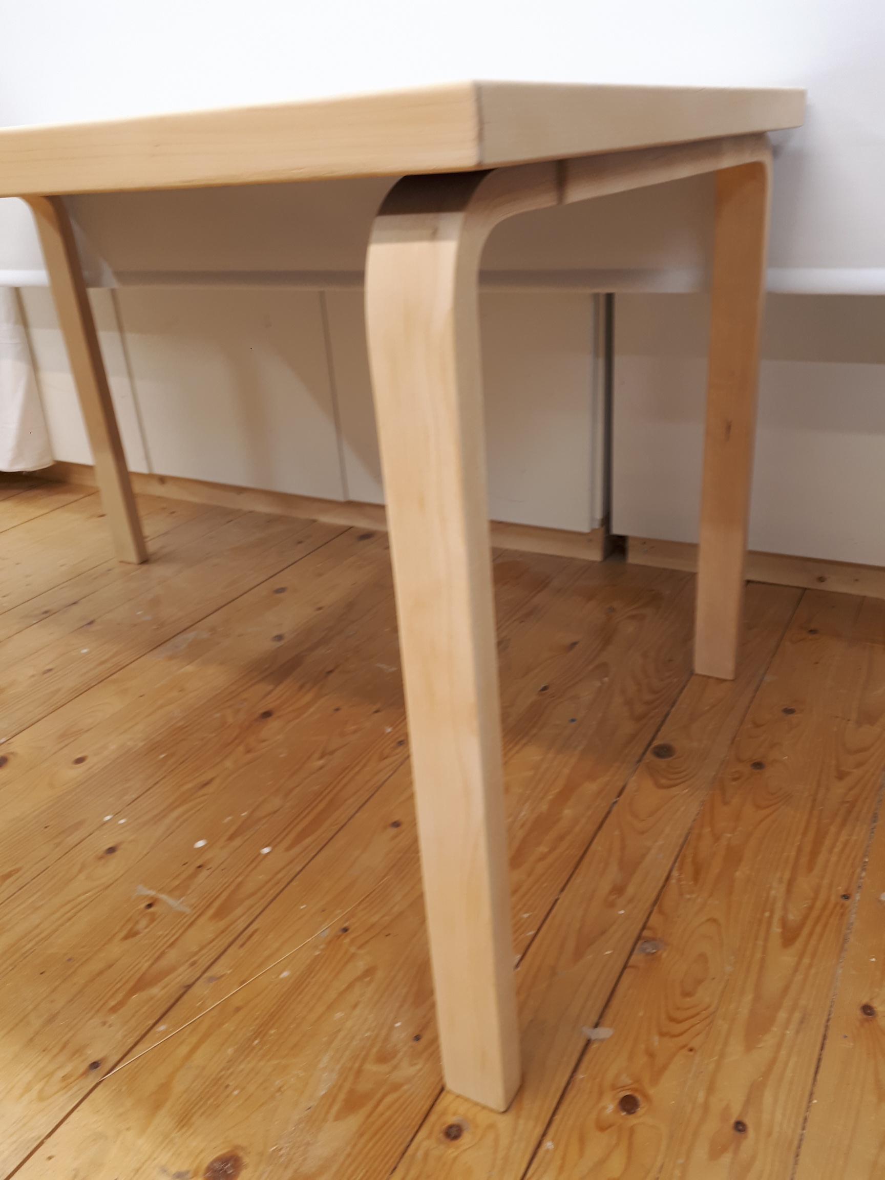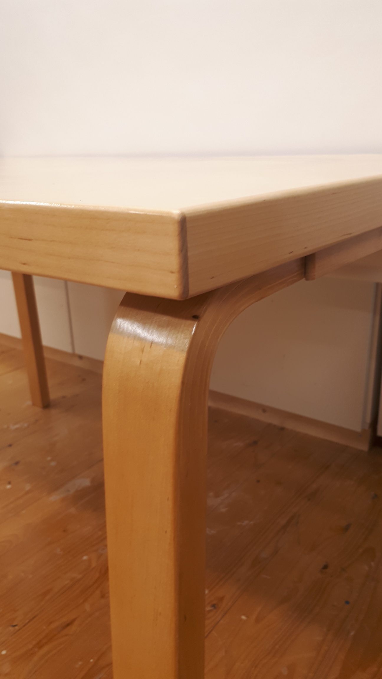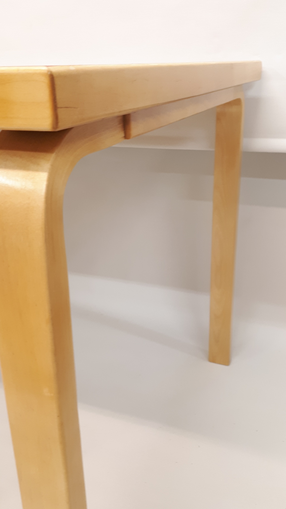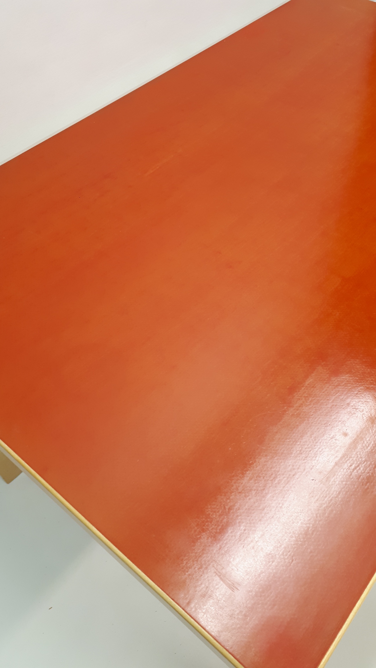 Kunnostettu Artekin pöytä mallia 81B 1970-luvulta punaisella linoleum-kannella. Pöydän kaikki puuosat on kunnostettu ja lähes virheettömät. Kauniisti patinoitunut linoleum-pinta on puhdistettu ja kiilloitettu. Kaikki osat ovat alkuperäisiä mukaanlukien jalkojen kiinnityksen talttapääruuvit.