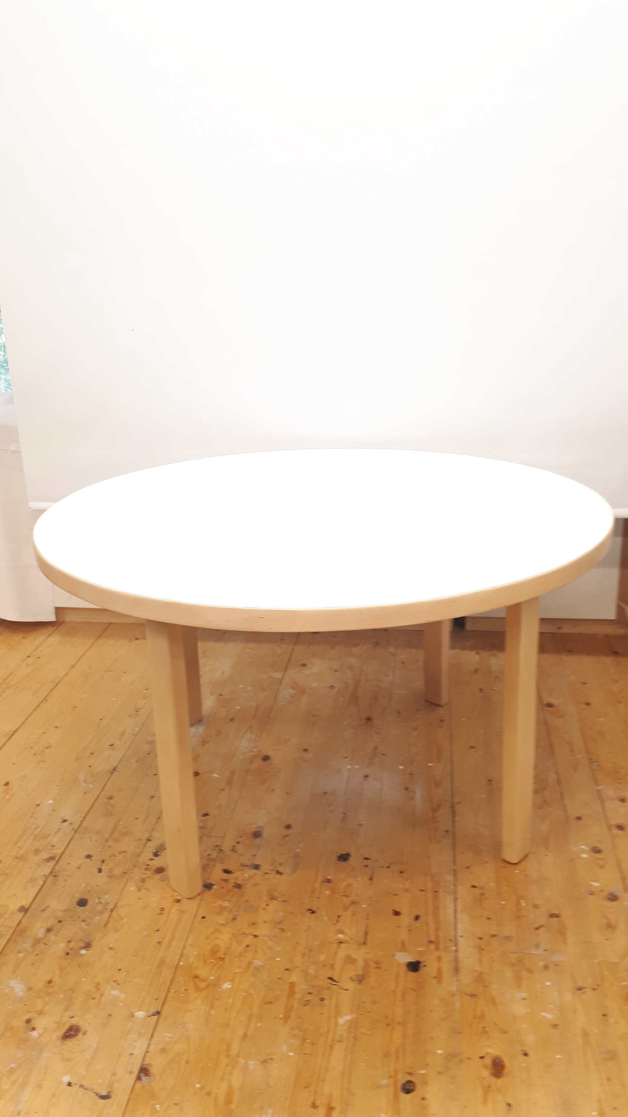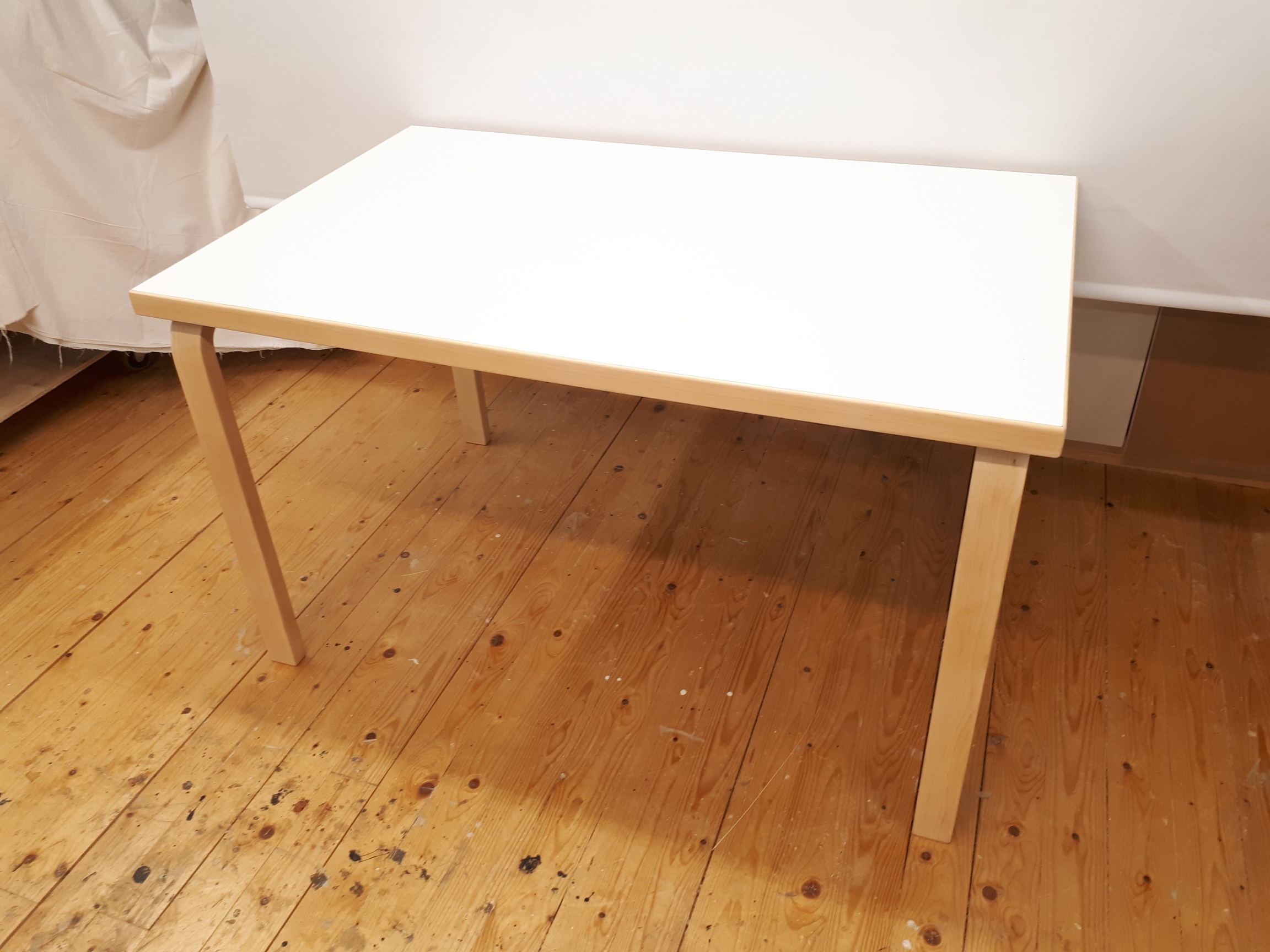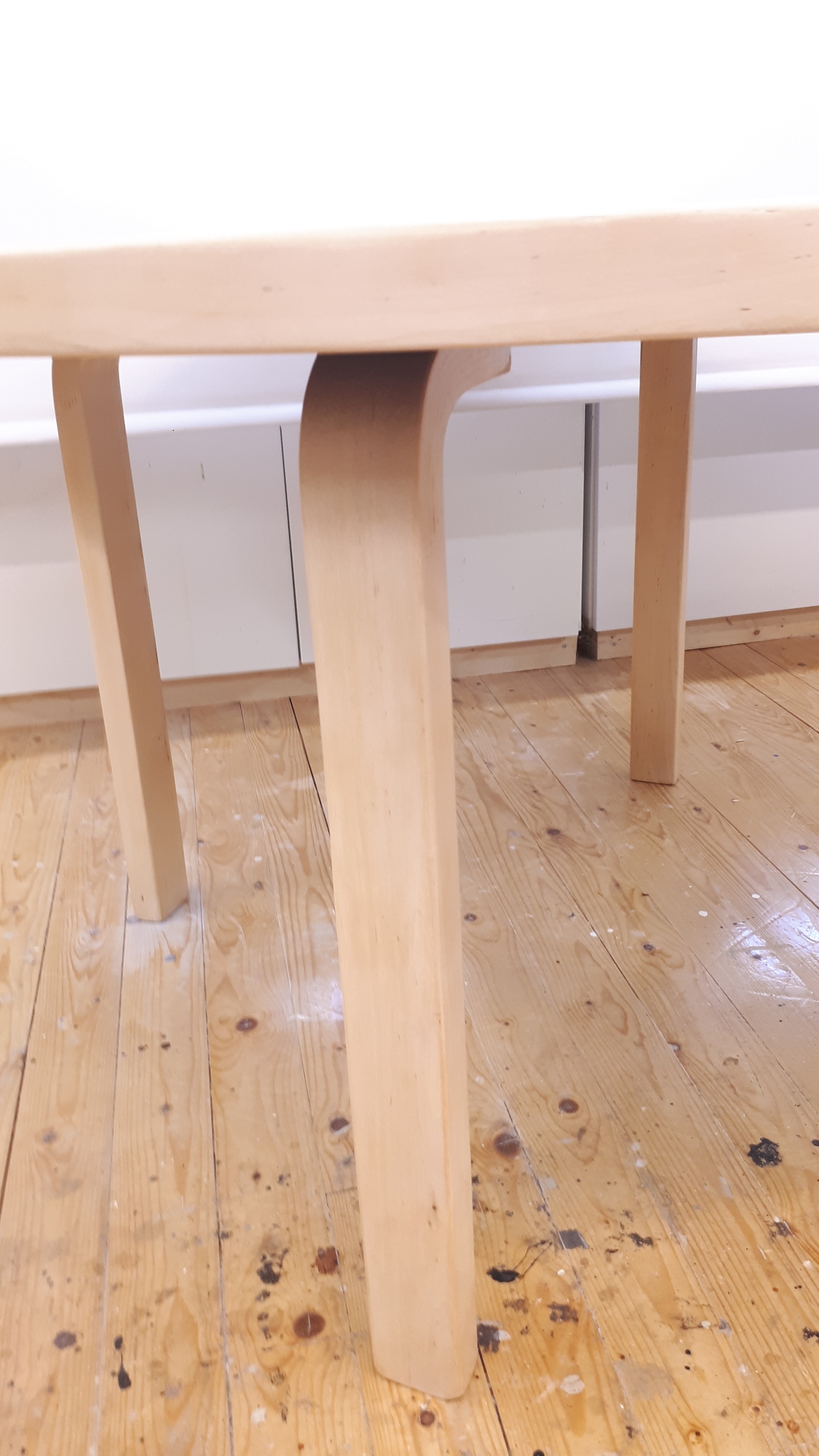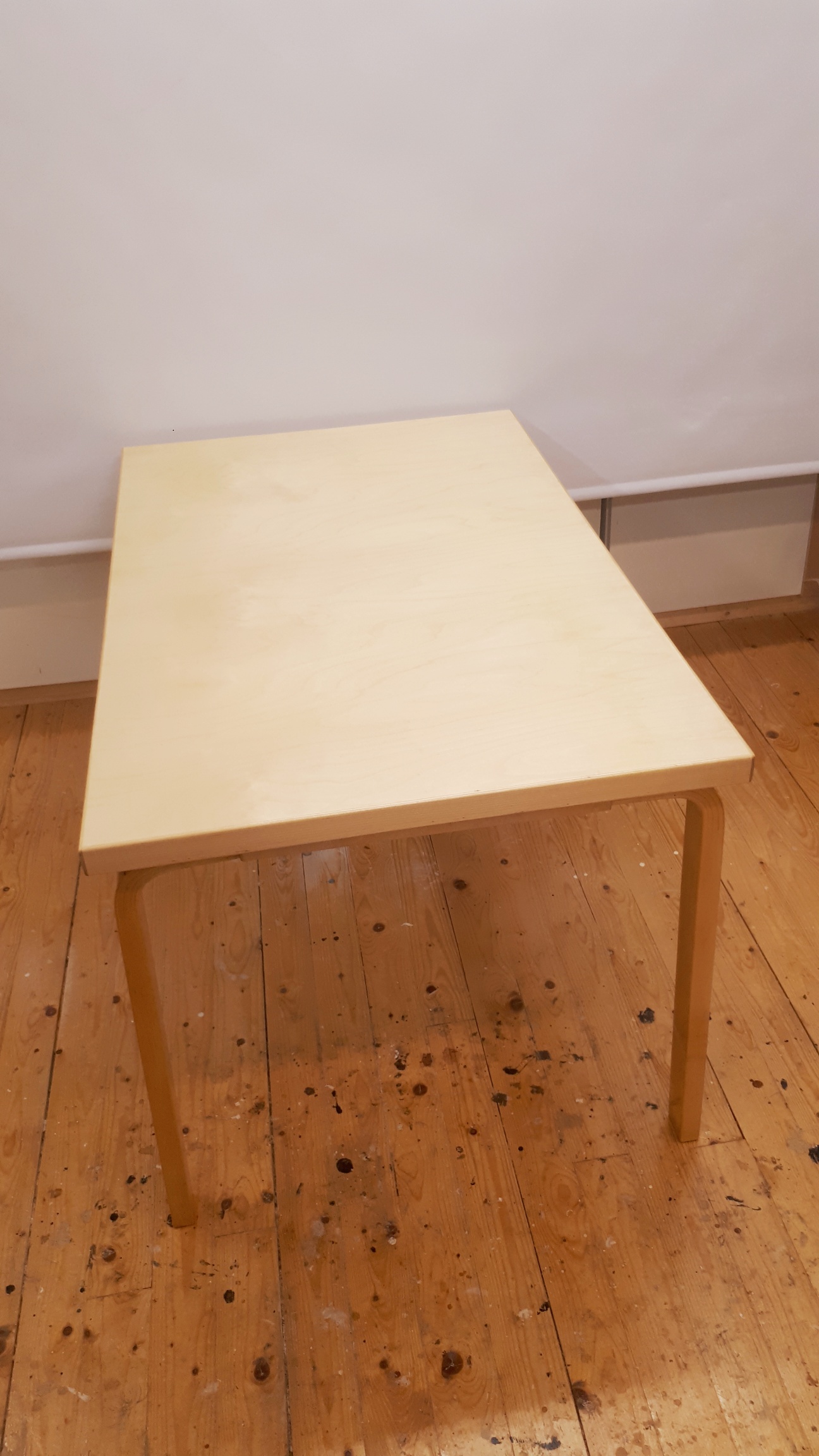 Kunnostettu Artekin pöytä mallia 81B 1970-luvulta punaisella linoleum-kannella. Pöydän kaikki puuosat on kunnostettu ja lähes virheettömät. Kauniisti patinoitunut linoleum-pinta on puhdistettu ja kiilloitettu. Kaikki osat ovat alkuperäisiä mukaanlukien jalkojen kiinnityksen talttapääruuvit.