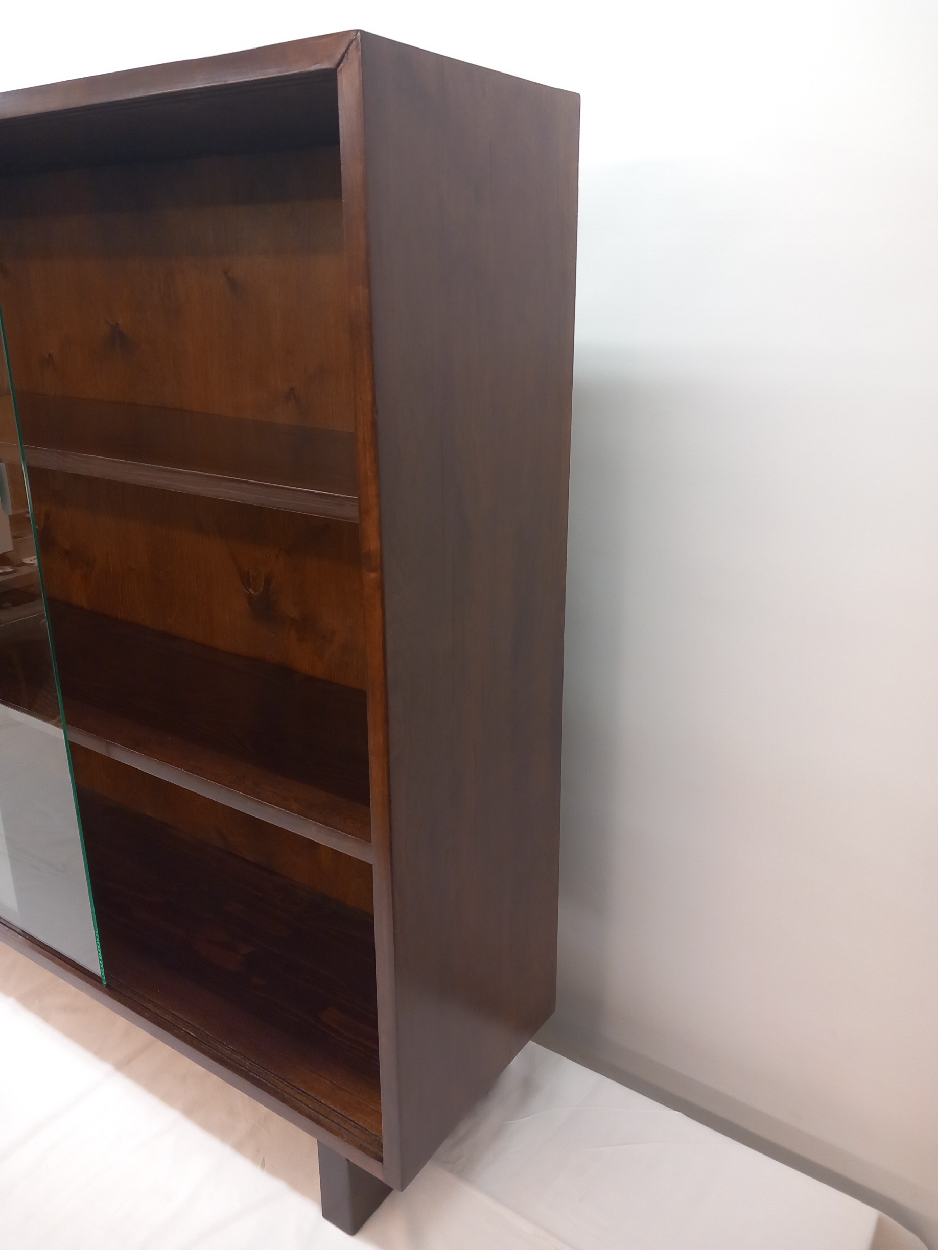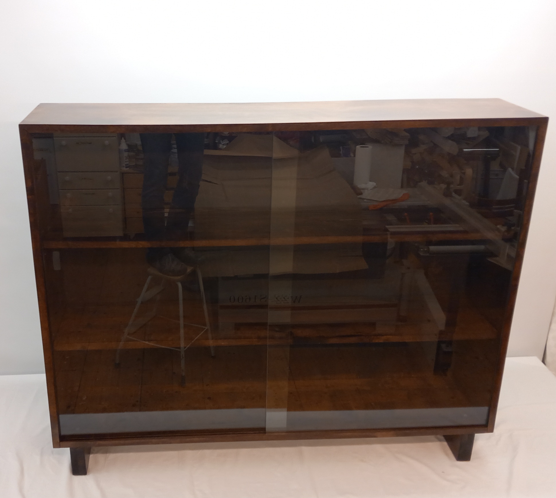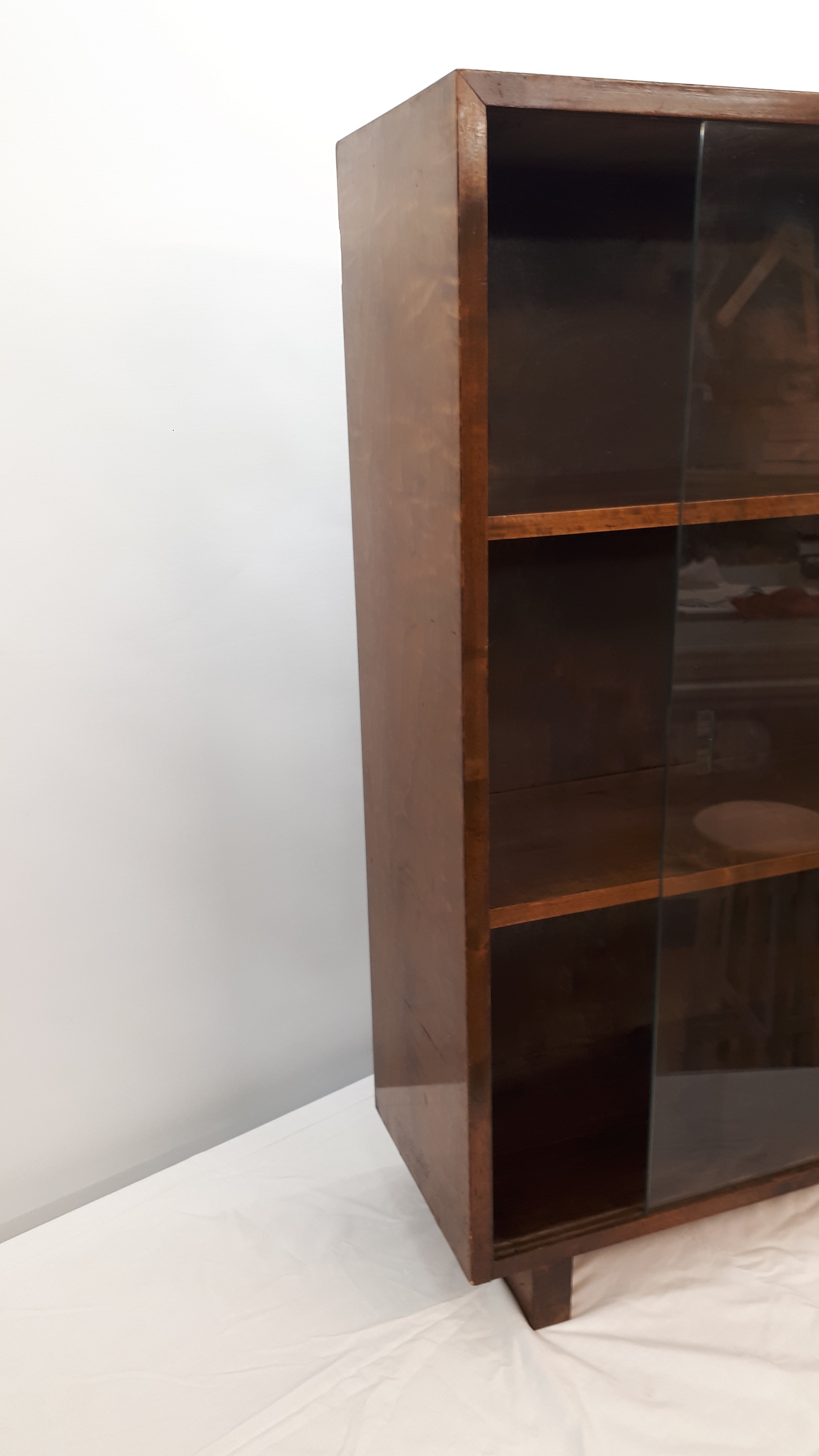 Kunnostettu, erinomaisessa kunnossa oleva kotimainen kirjakaappi/-vitriini 1940-luvulta. Kaappiin mahtuu 3,5 hyllymetriä kirjoja.