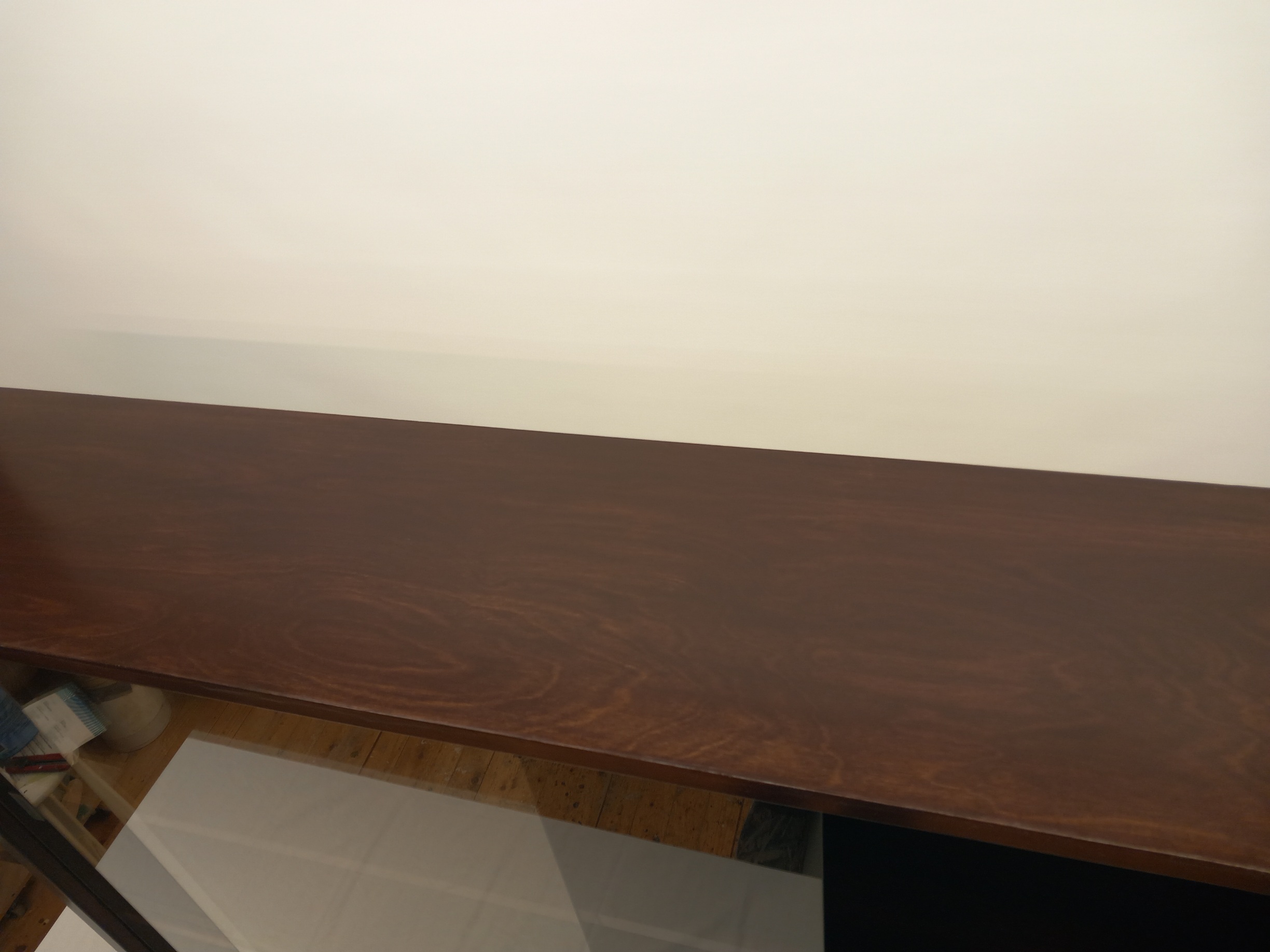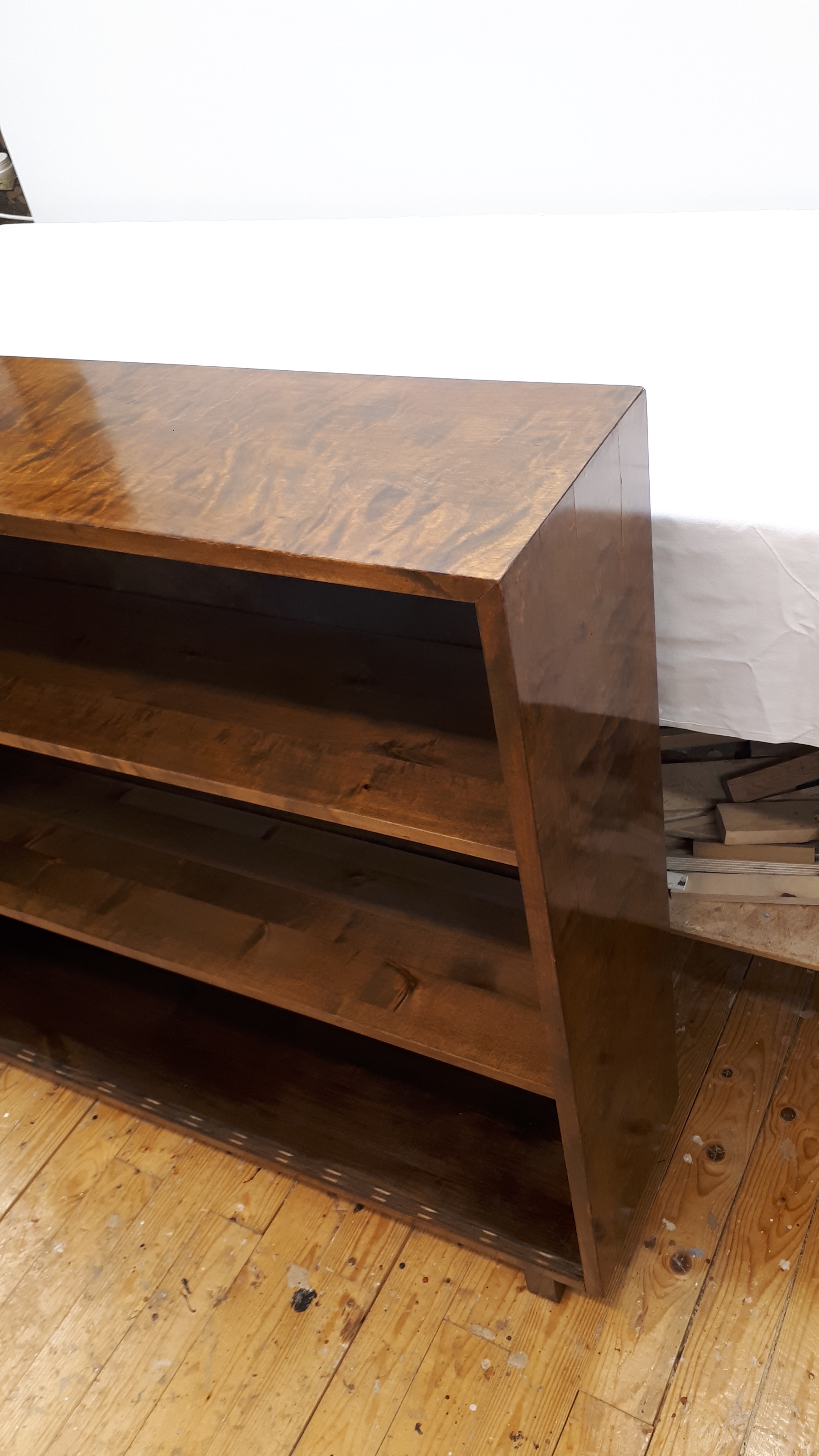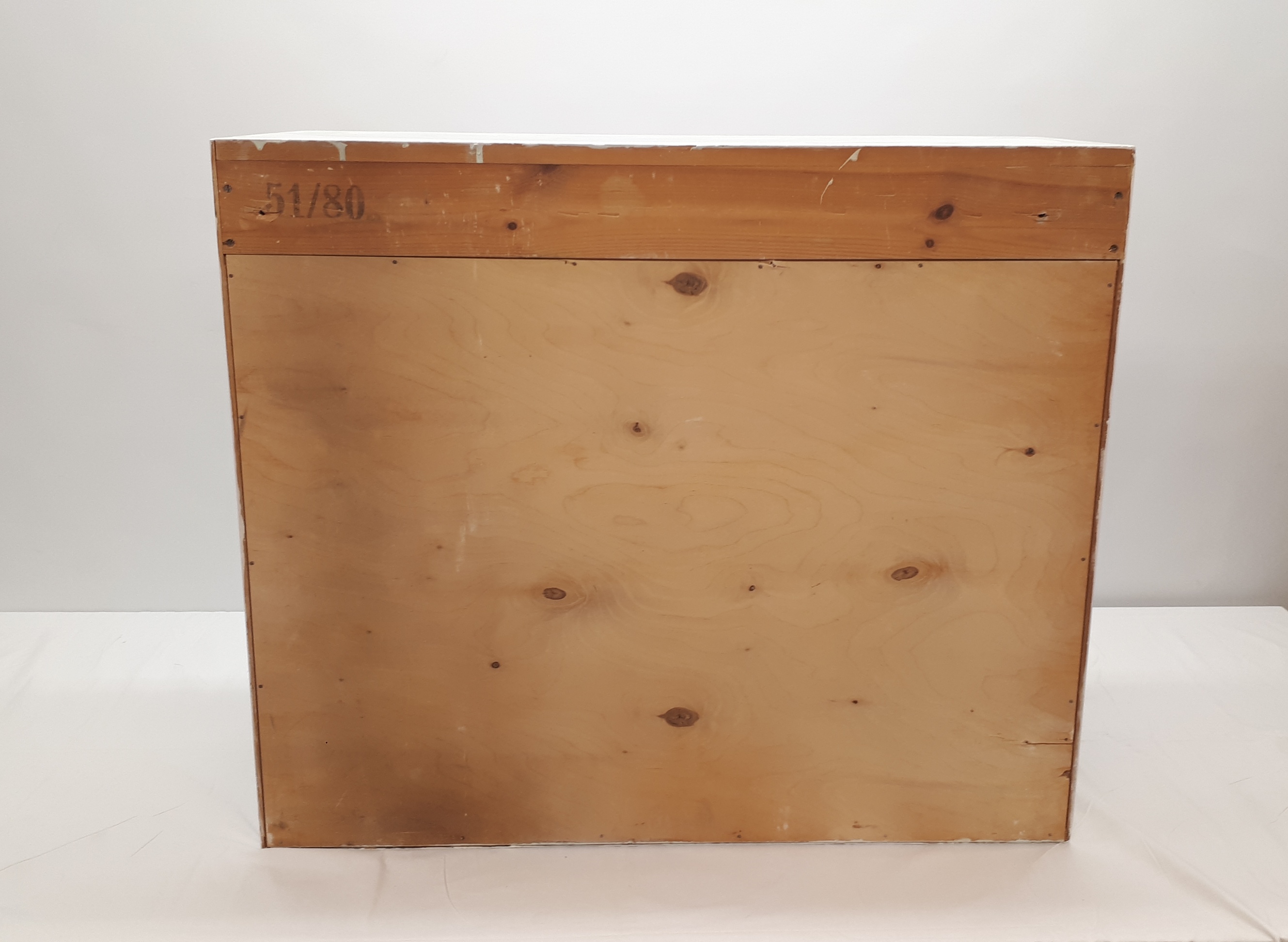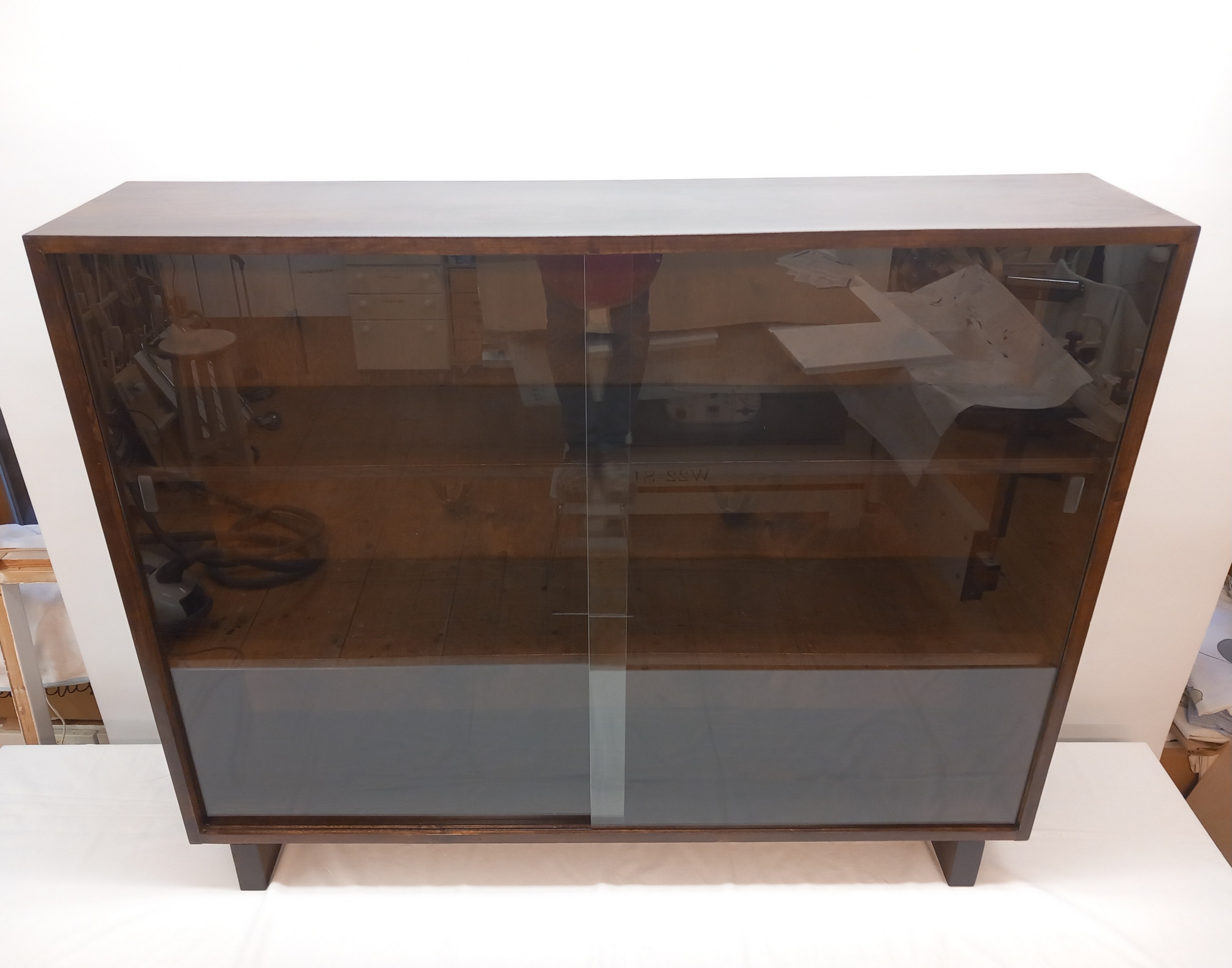 Kaappi on ilmeisimmin Askon kirjakaappi Nro 540. Kaapista ei löydy valmistajan leimaa, mutta se vastaa mittasuhteiltaan ja materiaaleiltaan kyseistä kaappia. Kaikki kaapin osat ovat alkuperäisiä pois lukien työntölasit, jotka on uusittu alkuperäisten huonekalupiirustusten mukaisesti.
