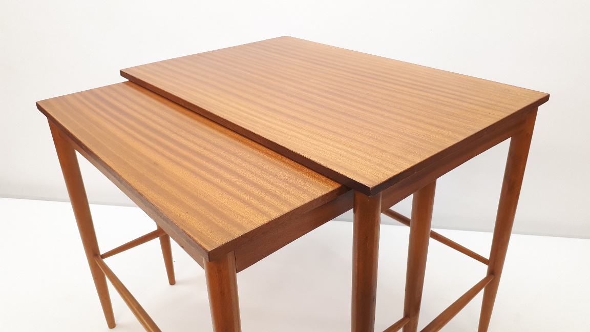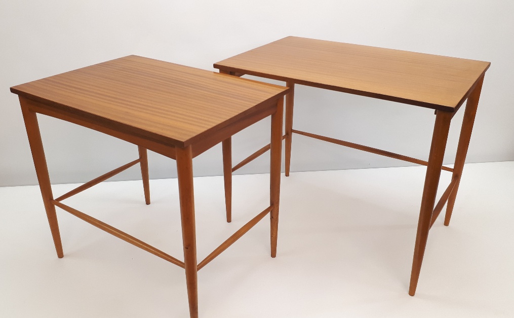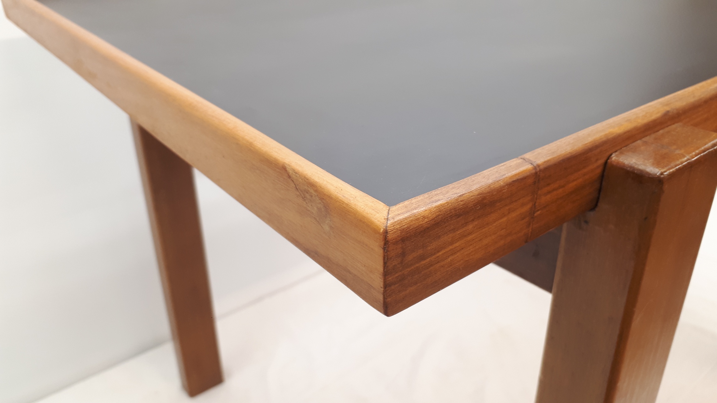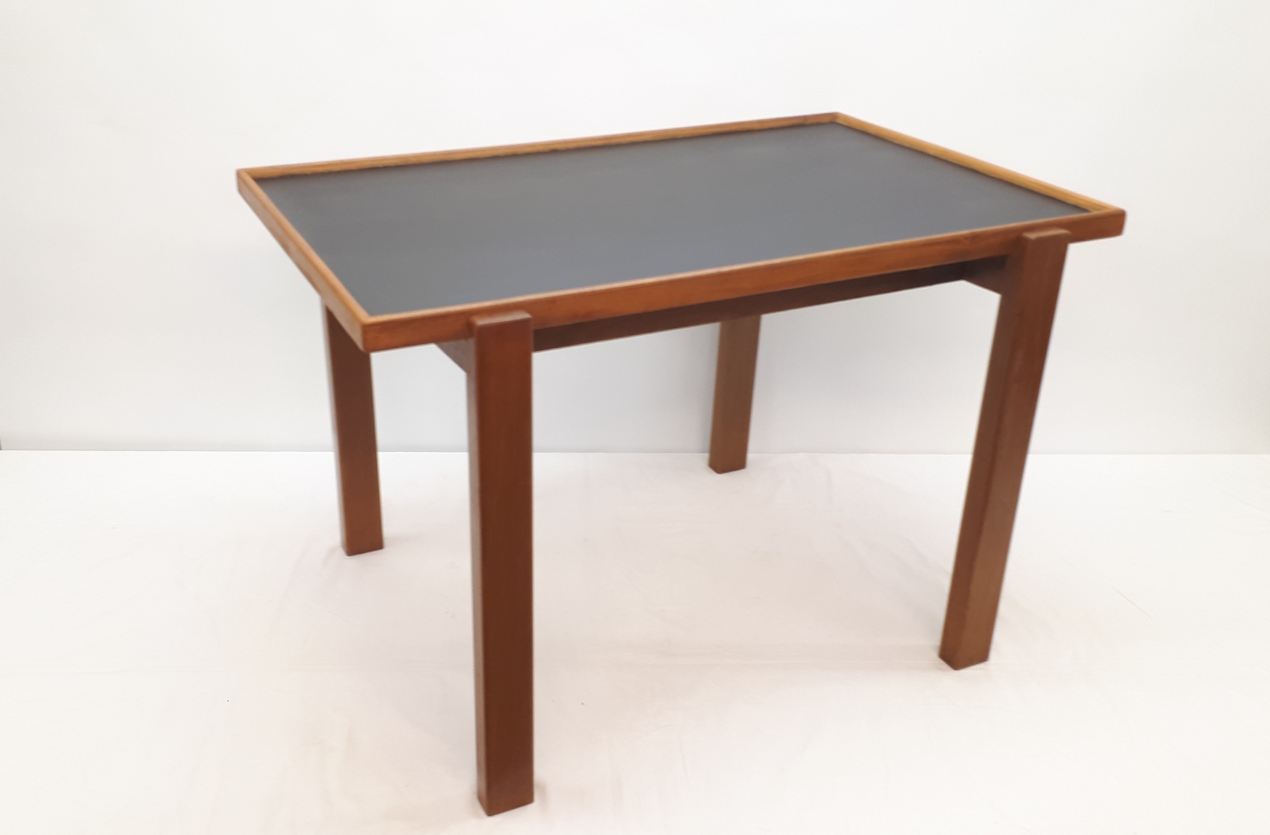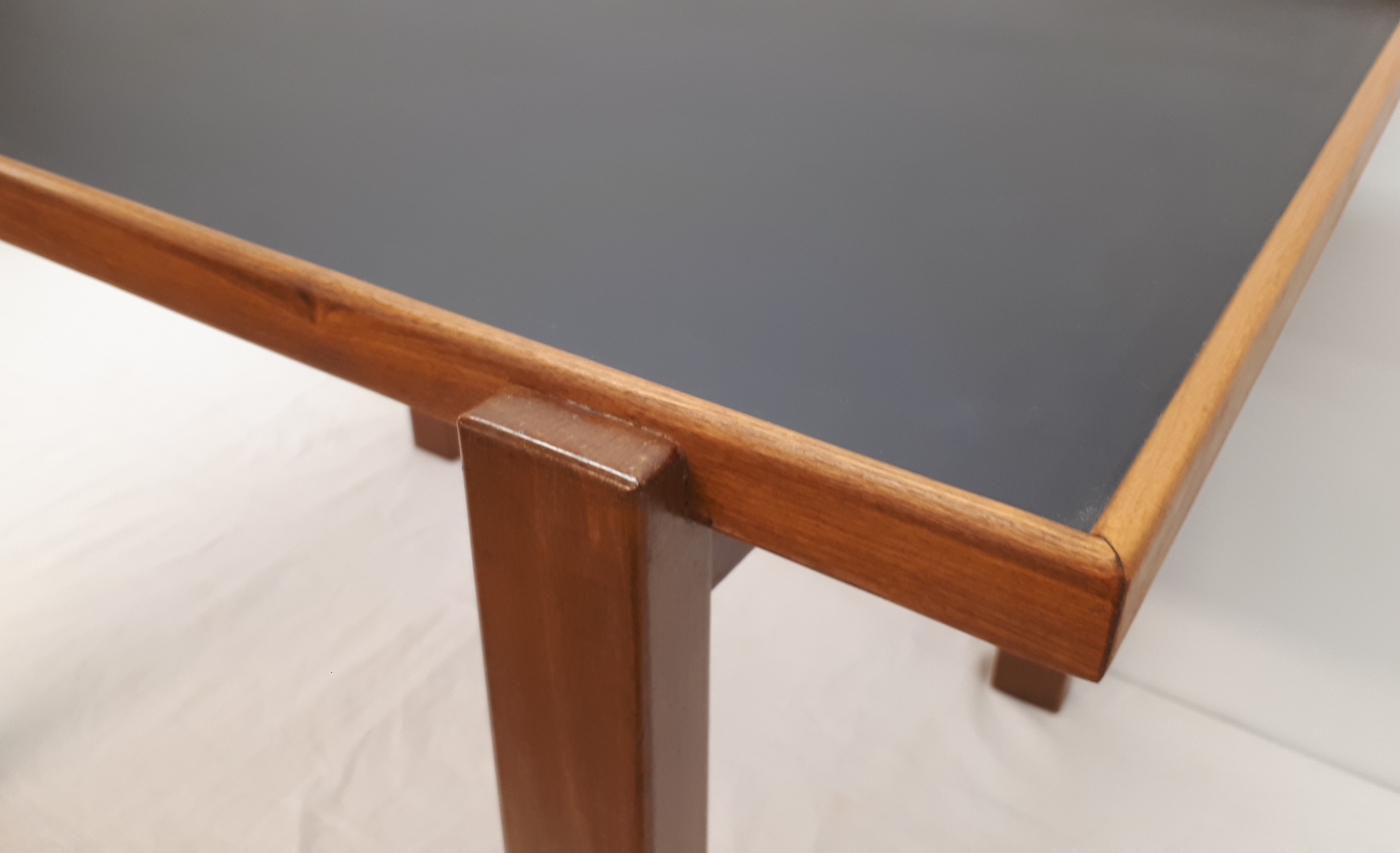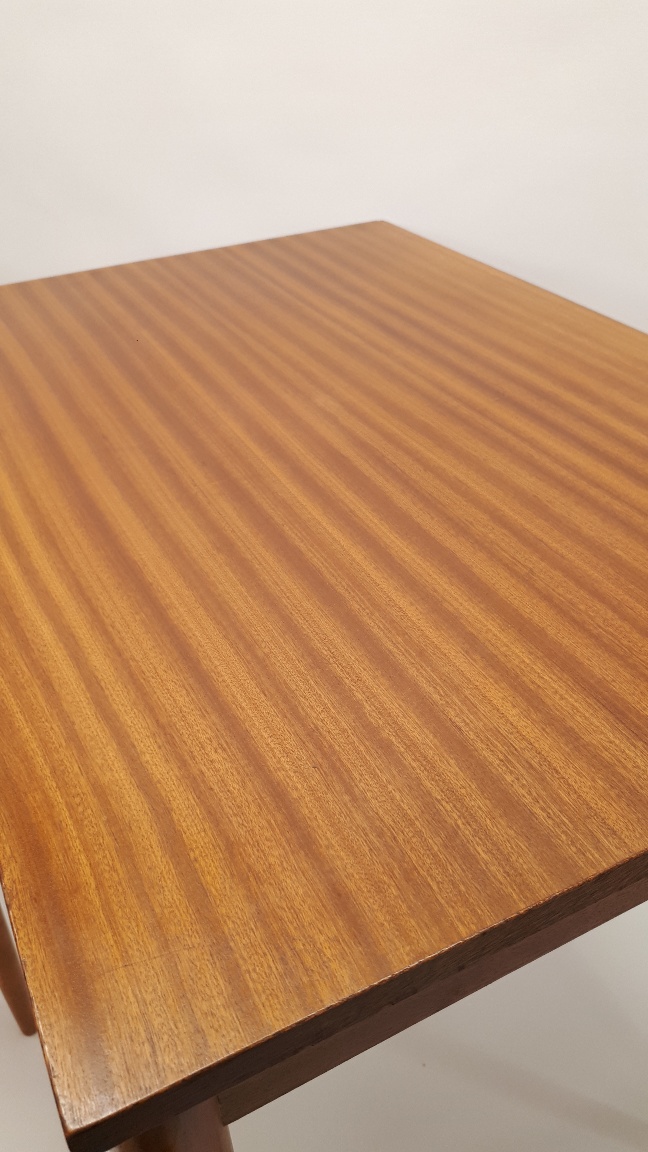 Kunnostettu, erinomaisessa kunnossa oleva 1960-luvun teak-sohvapöytä. Tukevat mahonkijalat. Pöydän pinnan viilutus on täysin ehjä, naarmuton ja tasavärinen.